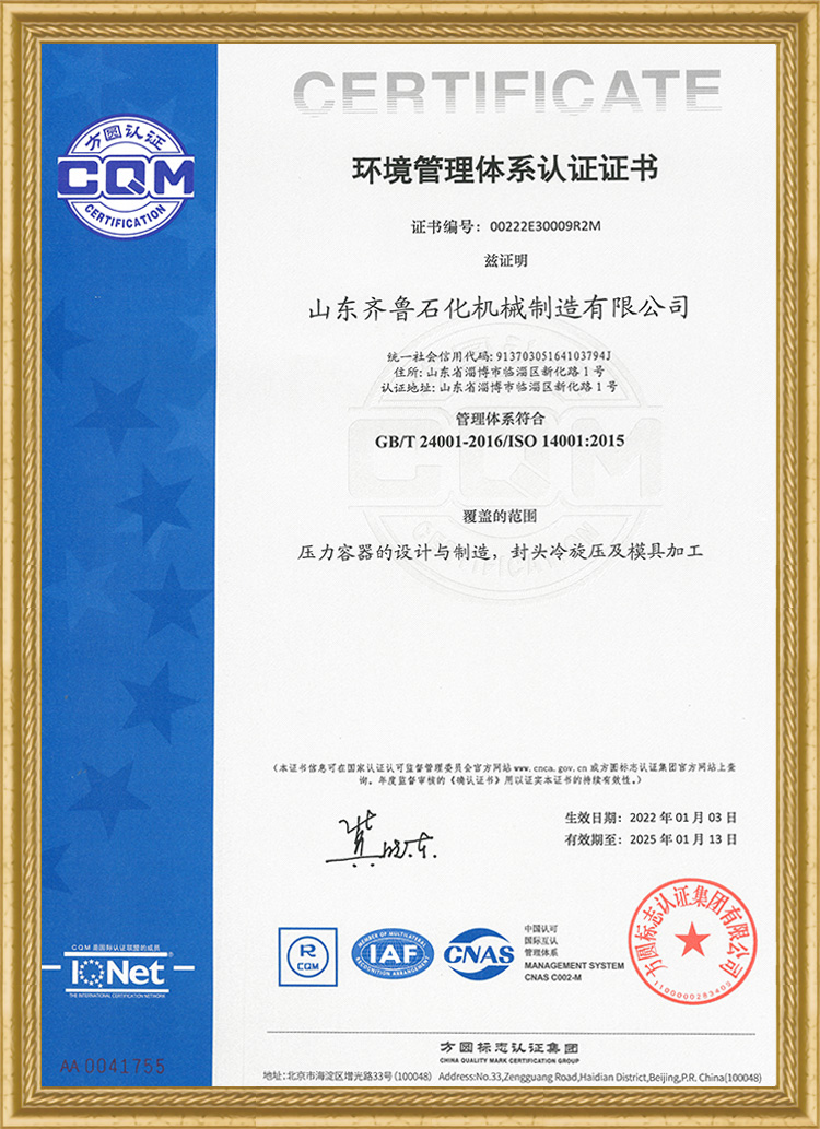 環(huán)境管理體系認(rèn)證證書
