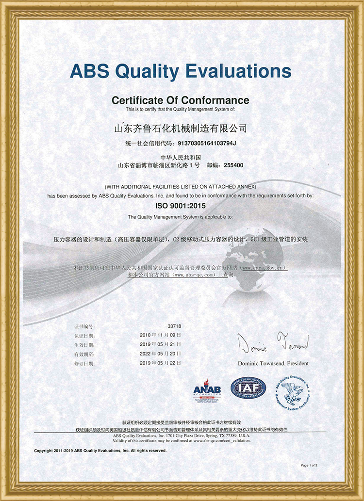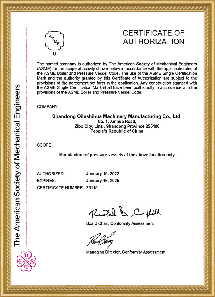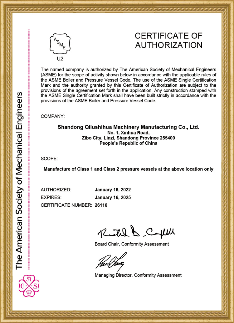 ASME制造設(shè)計許可證U.U2證書